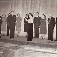 Fotografia de Maria Matos na Peça " O Escorpião" (Teatro Avenida, 1932) com a dedicatória "À maior actriz da língua portuguesa e do meu coração. Um sincero agradecimento do colega e do brasileiro." assinatura não identificada com data 27.10,1950