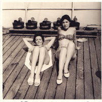 Foto de Maria José e Lily Neves em fato de banho a apanhar sol