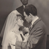 Fotografia da peça "A Nossa Cidade" (Teatro Estúdio de Lisboa), com Jorge Sousa Costa, Lily Neves e Vítor Ribeiro. Encenacão de Luzia Maria Martins, tradução de Our town de Thornton Wilder .