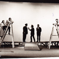 Fotografia da peça "A Nossa Cidade" (Teatro Estúdio de Lisboa), com o elenco entre eles Lily Neves e Vítor Ribeiro. Encenacão de Luzia Maria Martins, tradução de Our town de Thornton Wilder .
