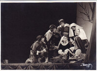 Fotografia da peça "Auto Pastoril Português" (Teatro da Estufa Fria) com elenco - Assis Pacheco, Andrade e Silva, Albino dos Santos, Lily Neves e outros n/i. Direccão Augusto de Figueiredo (Companhia de Teatro Popular)