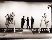 Fotografia de promoção de "A Encenação", de Lauro António ( 1991) com João Victor, Luís Raposo da Cruz, João Duarte Victor, Célia David, Lauro António, Gil António, Alexandre Pinheiro e Carlos Rodrigues. Produção TAS - Teatro de Animação de Setúbal no Fórum Luísa Tódi.