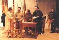 Fotografia da peça "A Nossa Cidade" (Teatro Estúdio de Lisboa), com Jorge Sousa Costa, Lily Neves e Vítor Ribeiro. Encenacão de Luzia Maria Martins, tradução de Our town de Thornton Wilder .